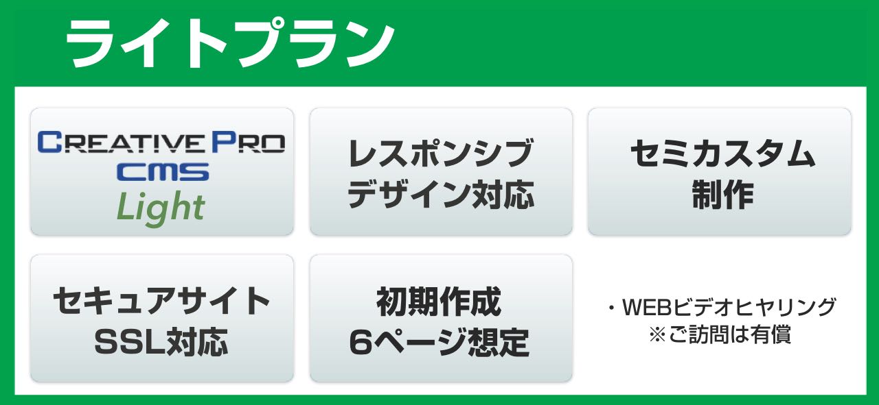 CreativeProCMSで運用できるホームページの制作、運用の基本プランです。本当に活用できるホームページを作って商売に役立てましょう。